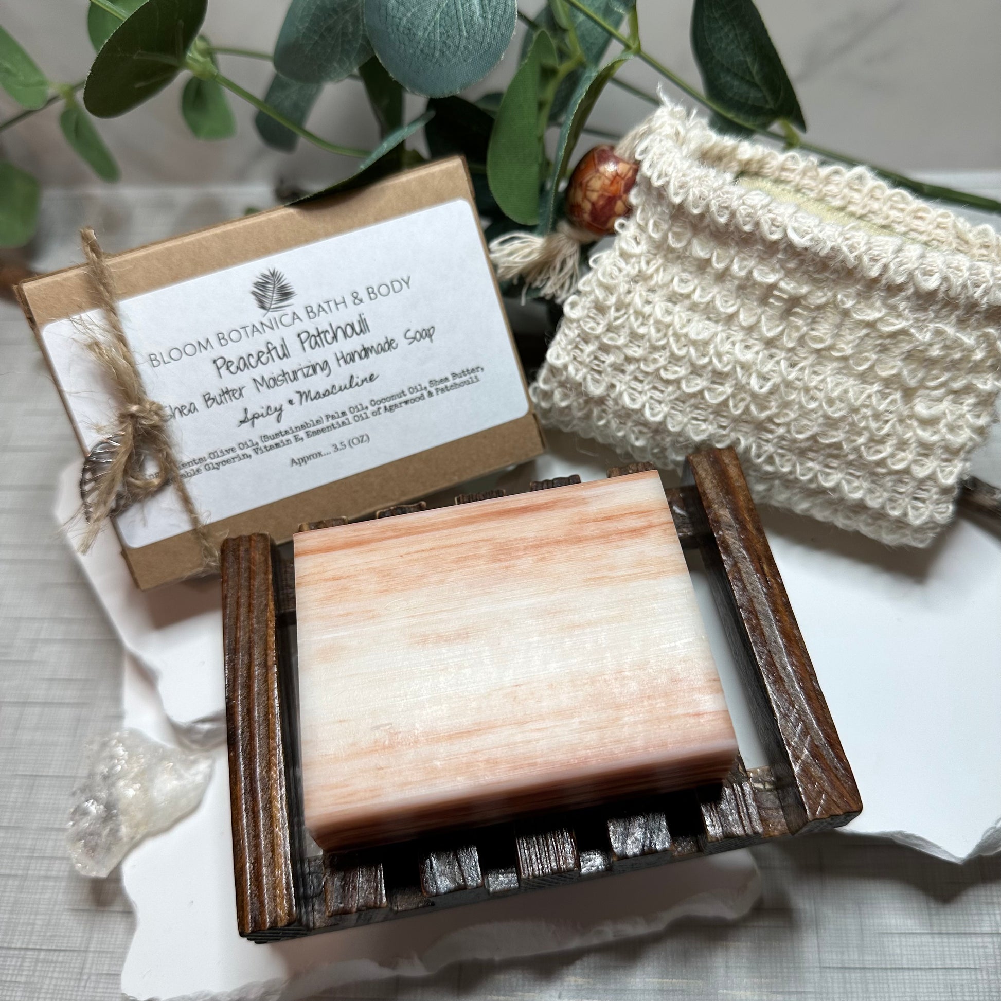 Soap Peaceful Patchouli and Shea Butter| Extremely Moisturizing | All Natural | Comes With Free Ramie Soap Bag