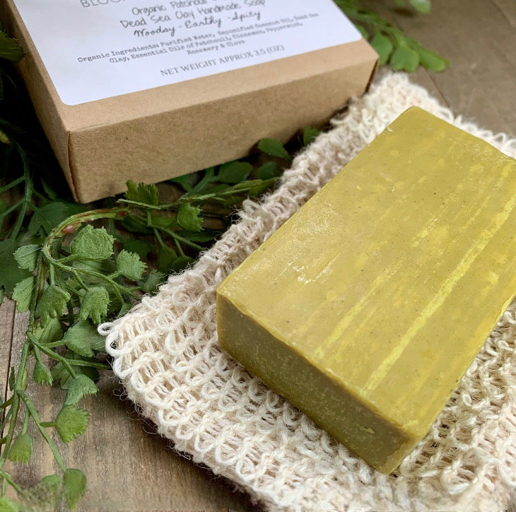 Soap Patchouli & Mint Dead Sea Clay | All Natural | Free Ramie Soap Bag Included