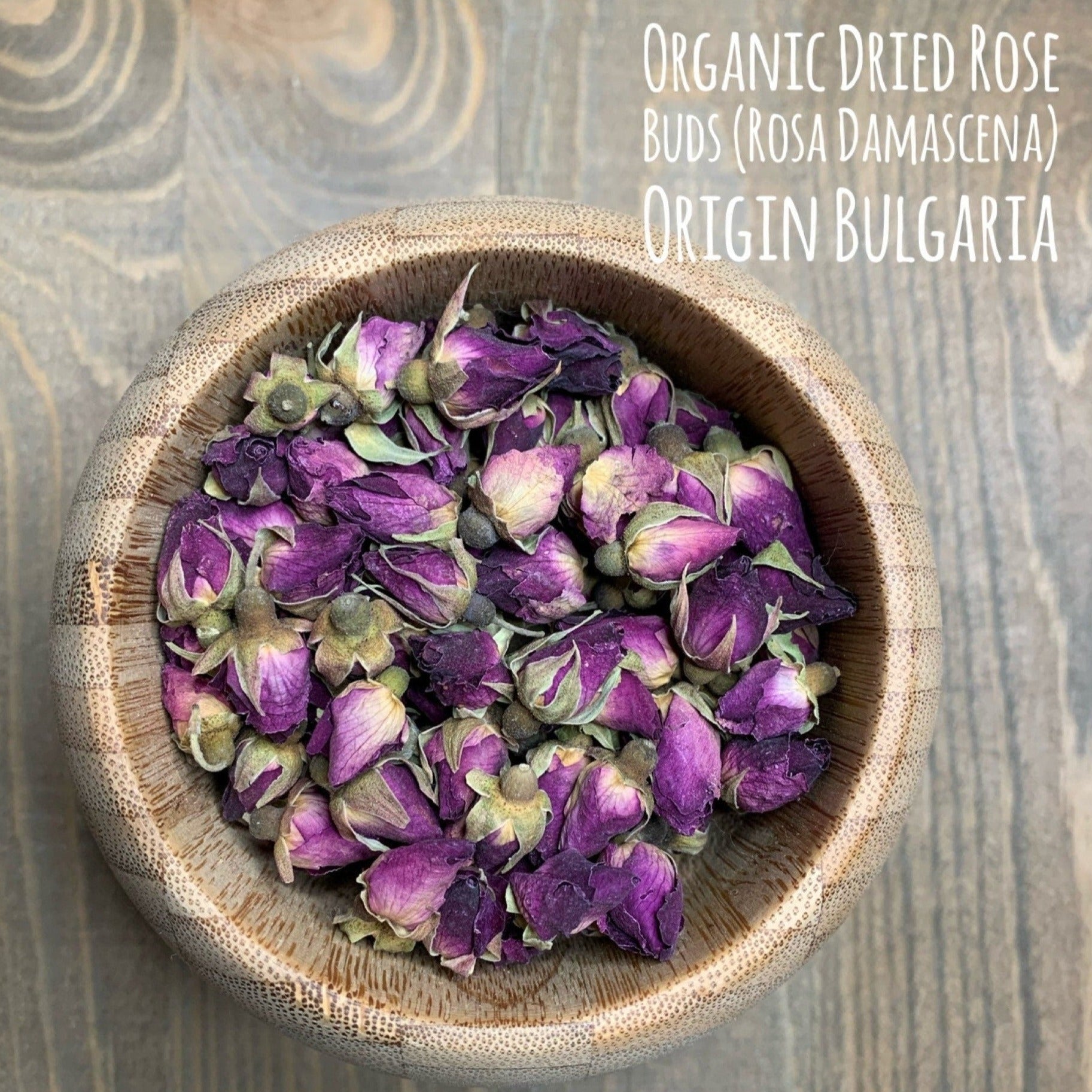 Organic Culinary Purple Dried Rose Buds (Rosa Damascena) Origin Bulgaria.