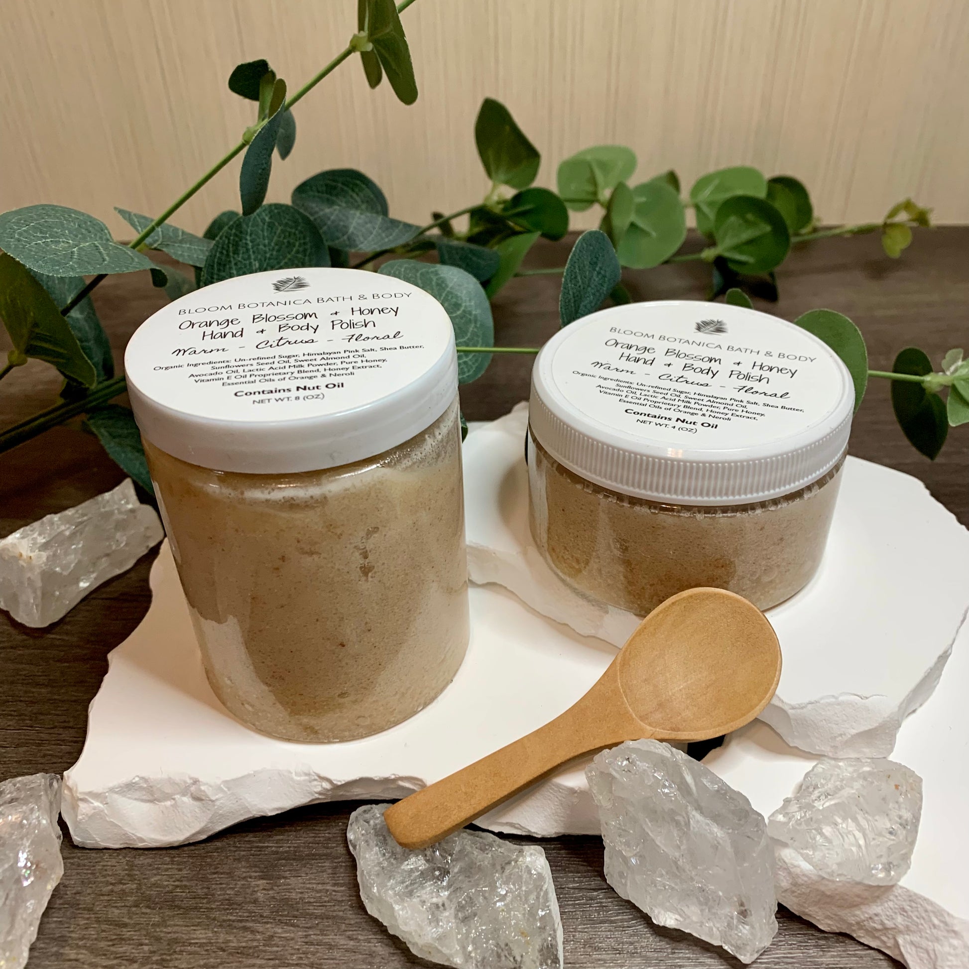 Orange Blossom Milk & Honey Sugar & Salt Body Scrub smells heavenly, and will leave your skin silky smooth, moisturized, and hydrated for hours.